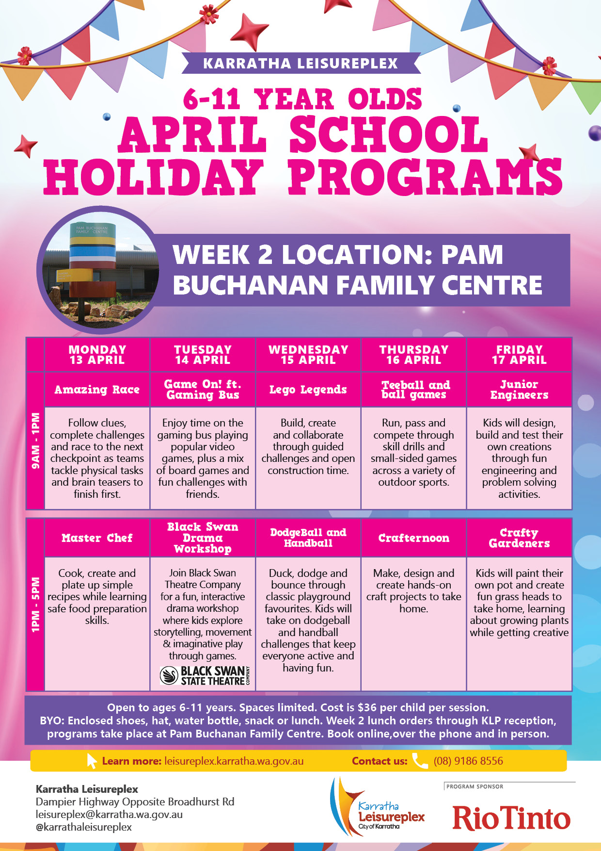 Please note: ALL Week 2 sessions take place at Pam Buchanan Family Centre