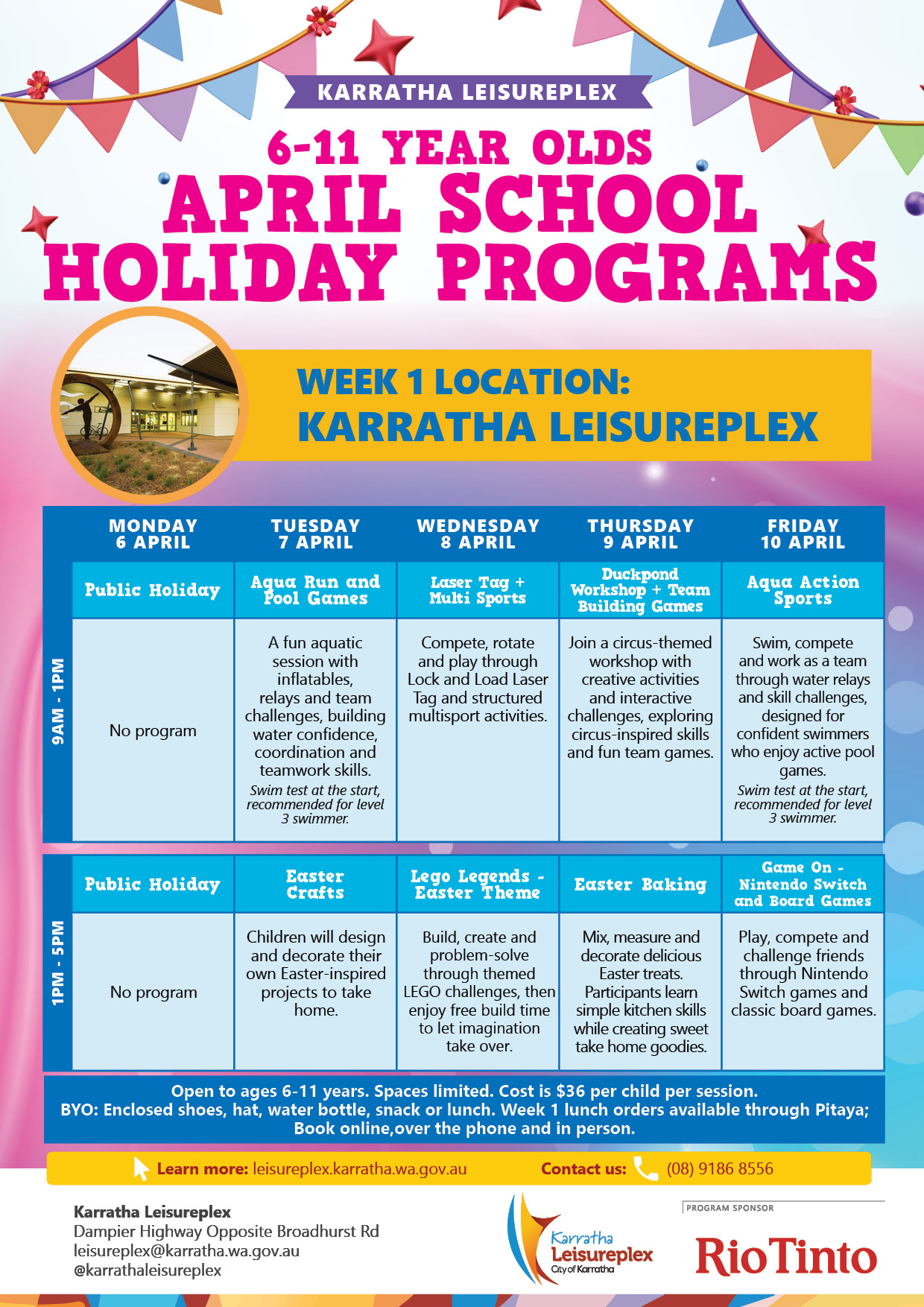 Week 1 at Karratha Leisureplex - 6 to 10 April